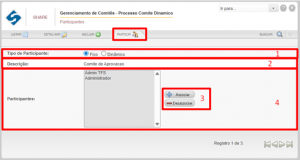 Na aba Participantes, o administrador poderá escolher entre as opções Fixo e Dinâmico (Figura abaixo, Passo 1).