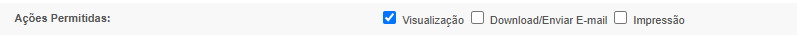 • Ou, deve ser vinculado a um Tipo de Documento que tenha configurada a opção “Ações permitidas” com o item “Download/Envia E-mail” habilitado, do tipo do documento selecionado, em Gerenciamento de Tipo de documento.