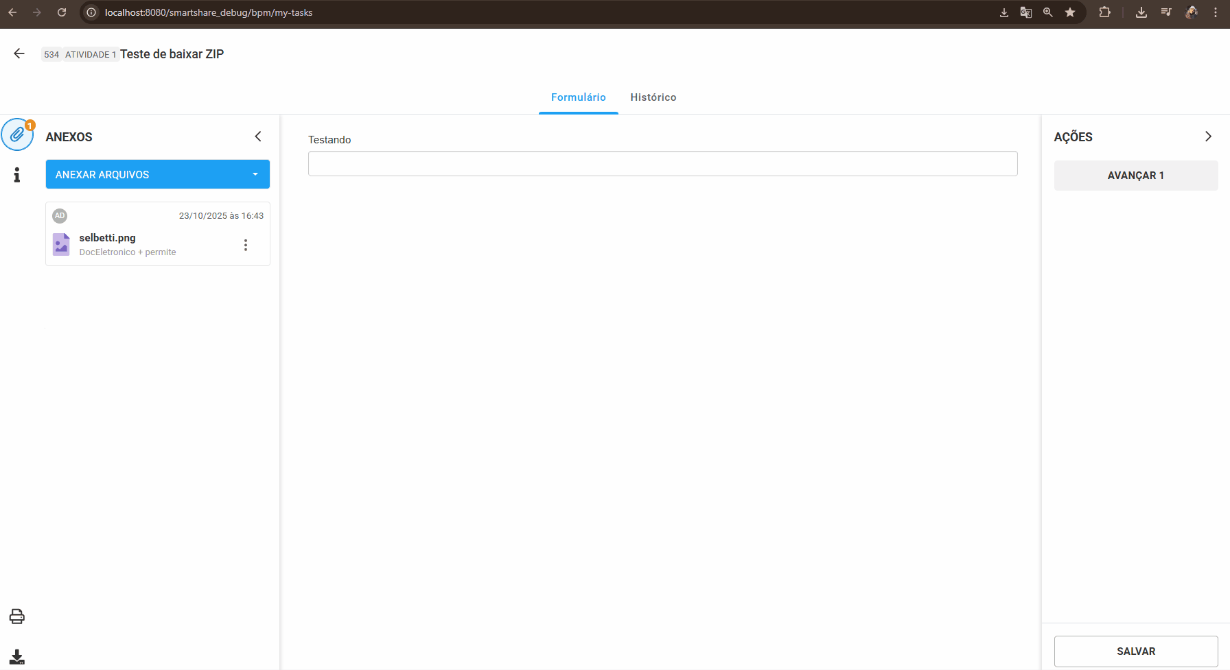 Com a opção baixar todos os anexos do SmartShare 4, ficou ainda mais simples baixar todos os arquivos do fluxo. Assim, o executor poderá realizar o download de forma prática, segura e centralizada, em um único arquivo .zip.