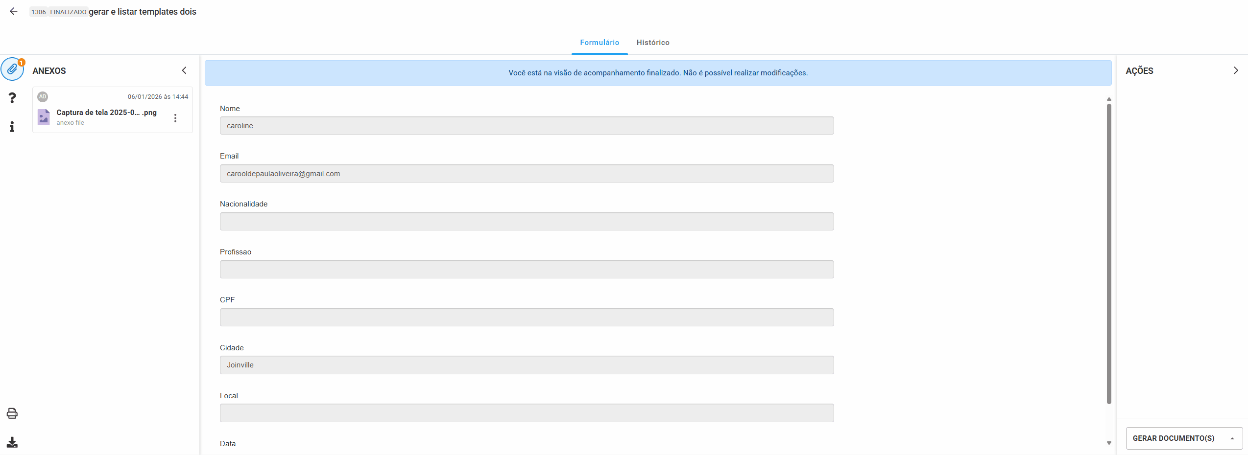 - O template não será anexado ao fluxo, uma vez que não é permitido anexar arquivos em fluxos já finalizados.