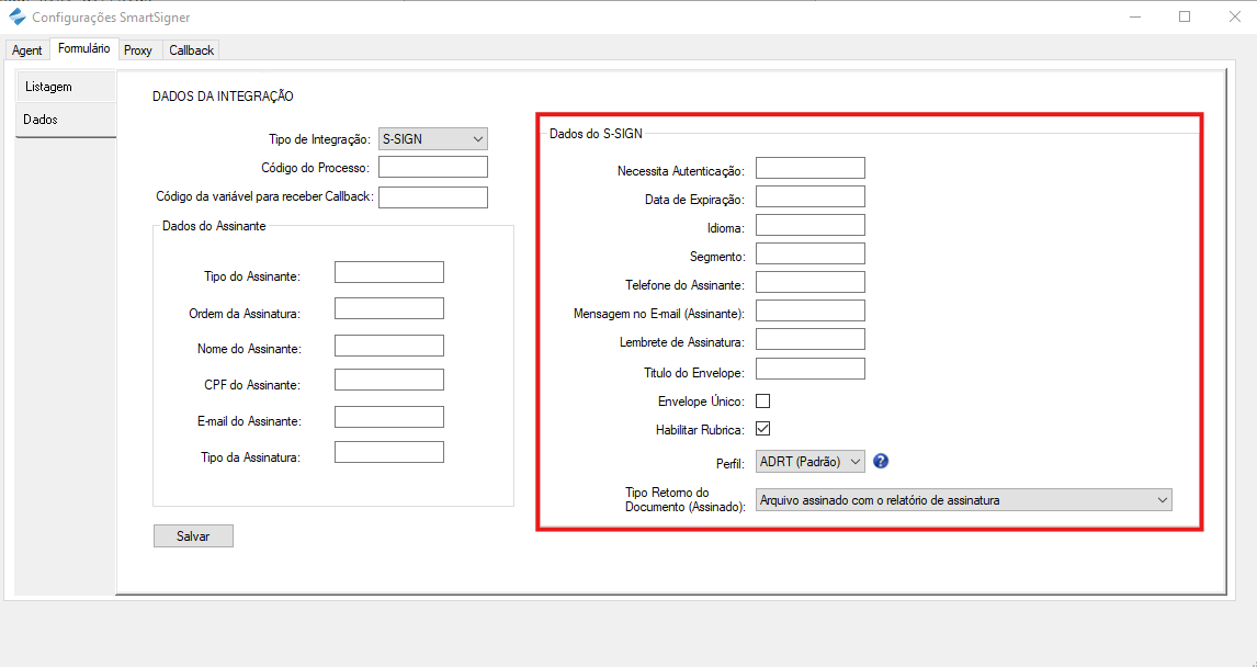 Para que a integração seja efetuada corretamente, é necessário configurar o aplicativo do SmartSigner. Será necessário ter um processo de assinatura criado com um formulário nos devidos padrões. Para obter mais informações sobre como configurar o formulário leia Configuração do Formulário 2.0.