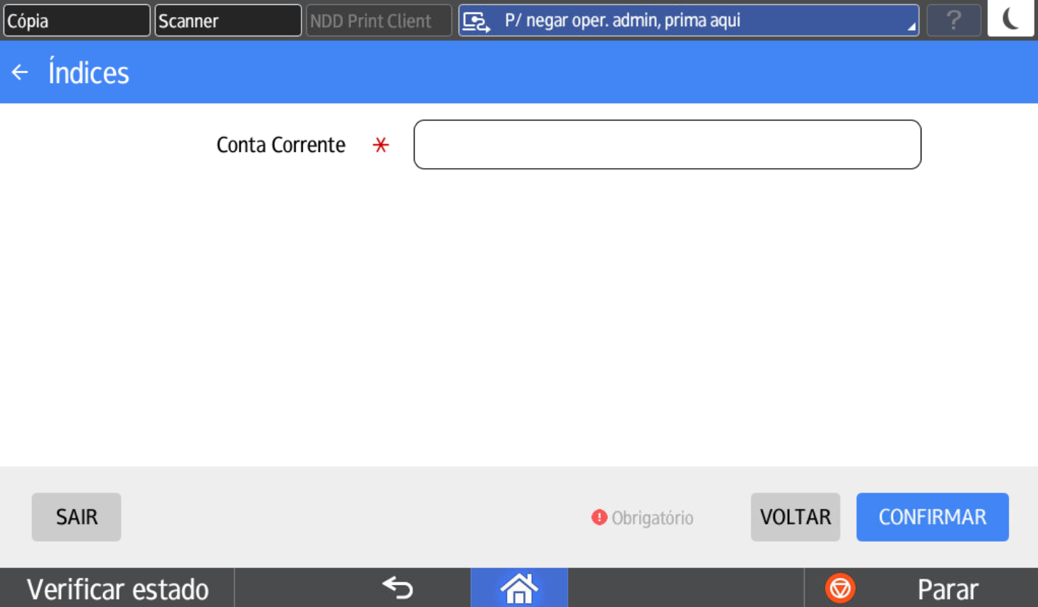 A funcionalidade de Índices do SmartShare permite ao usuário inserir informações obrigatórias para identificação e classificação do processo antes da digitalização dos documentos.